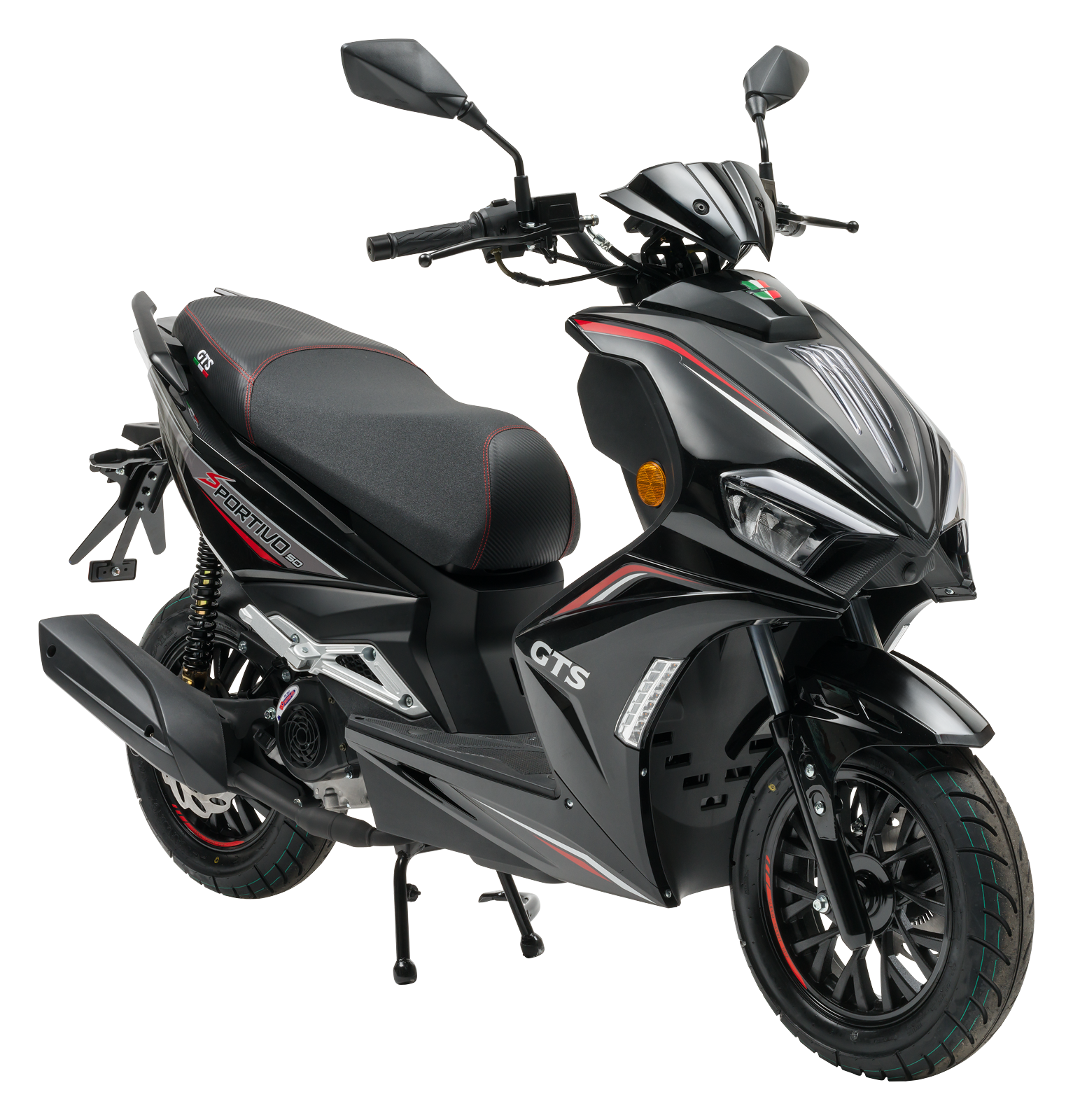 De GTS Sportivo valt op door zijn krachtige uitstraling en sportieve design. Strakke lijnen, dynamische details en robuuste vormen maken deze scooter tot een echte blikvanger.